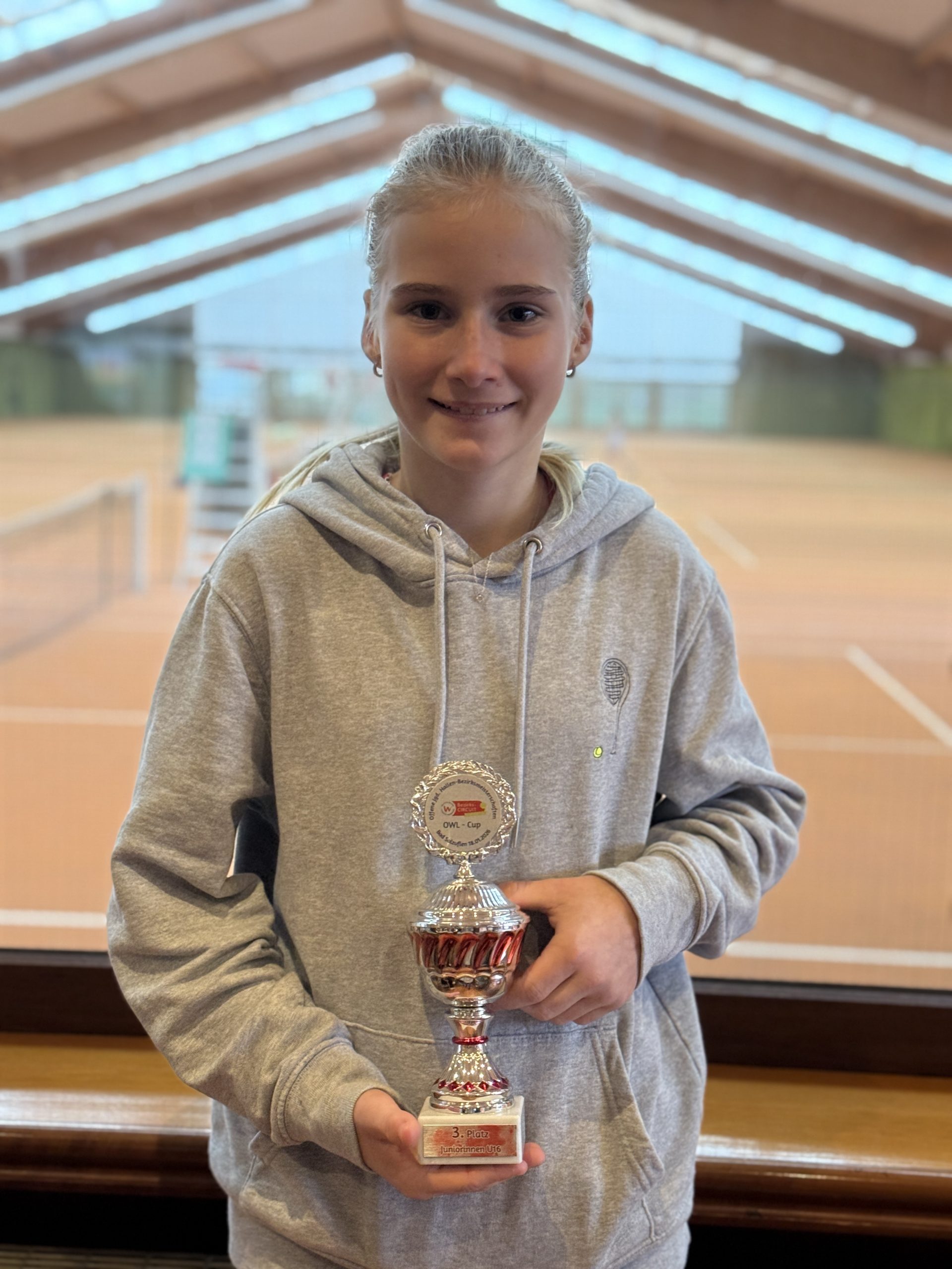 Mila Baden vom TC BW Lemgo spielte als 13 jährige bei den U16 offenen Bezirksmeisterschaften von OWL in Bad Salzuflen (17. – 19. Januar). Im Viertelfinale schlug sie Emilia Swierzy aus Espelkamp in drei Sätzen, verlor dann aber 6/4 6/1 gegen Pauline Hunke vom TC BW Halle. Trotzdem war das Erreichen des Halbfinals ein schöner Erfolg für Mila.