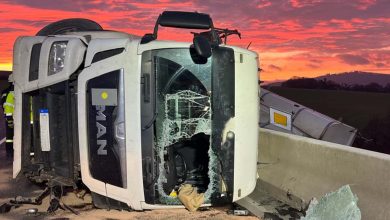 Barntrup. LKW kippt durch Zusammenstoß auf die Seite – Verkehrsunfall auf der Nordumgehung