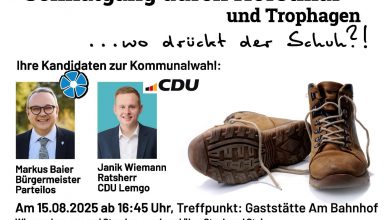 Am 10.08.2025 veranstalten die drei Braker CDU-Ratskandidaten den Dorfspaziergang durch Brake. Anschließend laden Sie ein zu Kaltgetränken und Bratwurst in der…