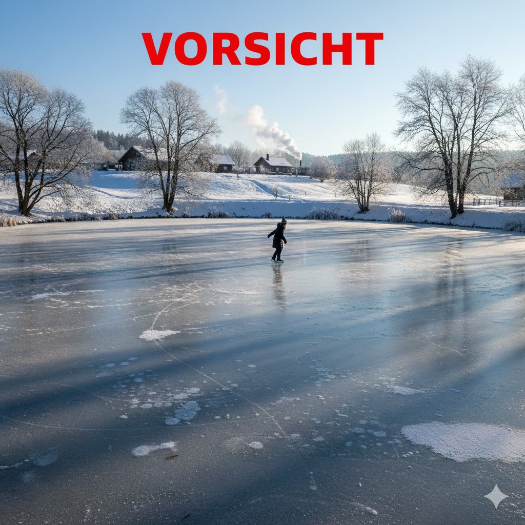 Offizielle Stellen warnen immer wieder vor dem Betreten der noch nicht freigegebenen Eisflächen. Aufgestellte Verbotsschilder an den Gewässern sind unbedingt zu beachten. Eine Eisfläche ist erst ab etwa 15 cm als tragfähig einzustufen. Vermeiden Sie es, alleine das Eis zu betreten. Sollte etwas passieren, dauert es entsprechend lange bis Hilfe angefordert wird und an der Unfallstelle eintrifft.