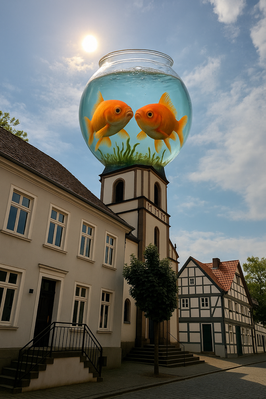 Lemgos Innenstadt soll und muss attraktiver werden, darüber sind sich alle einig. Nach zahlreichen Treffen und Versammlungen mit den Vorschlägen ‚Fischbratküche‘, ‚Irgendwas für Jugendliche‘, einem Softeisladen und 14 neuen Förderprogrammen mit externen Beratern nun die endgültig durchschlagende Idee: ein überdimensionales Goldfischglas auf der ehemaligen Bonifatiuskirche im Rampendal. Name: ‚Boniquarium‘ (Kofferwort aus Bonifazius und Aquarium)