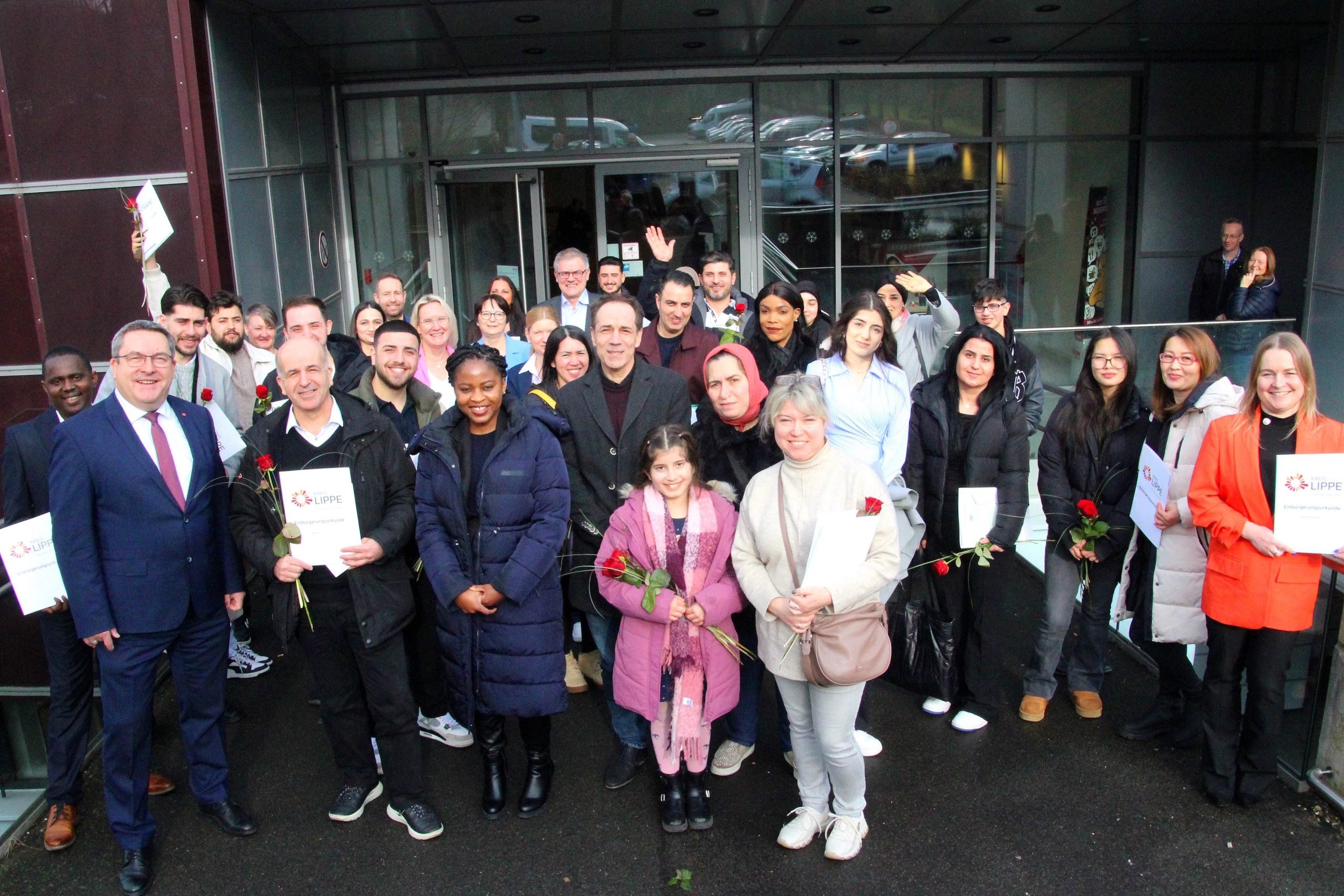 „Ich gratuliere herzlich zu Ihrer Einbürgerung und freue mich, Sie offiziell als Bürgerinnen und Bürger willkommen zu heißen. Eine Einbürgerung in ein anderes Land ist ein großer Schritt, den Sie mutig gegangen sind. Ich freue mich, dass Sie dafür Lippe als Ort ausgewählt haben“, sagte Landrat Dr. Axel Lehmann. „Sie bereichern die Region und tragen zu einer vielfältigen Gesellschaft bei“, ergänzte er. Die Herkunft der neuen Bürgerinnen und Bürger reicht von Afrika, über Nord- und Osteuropa bis nach Asien.