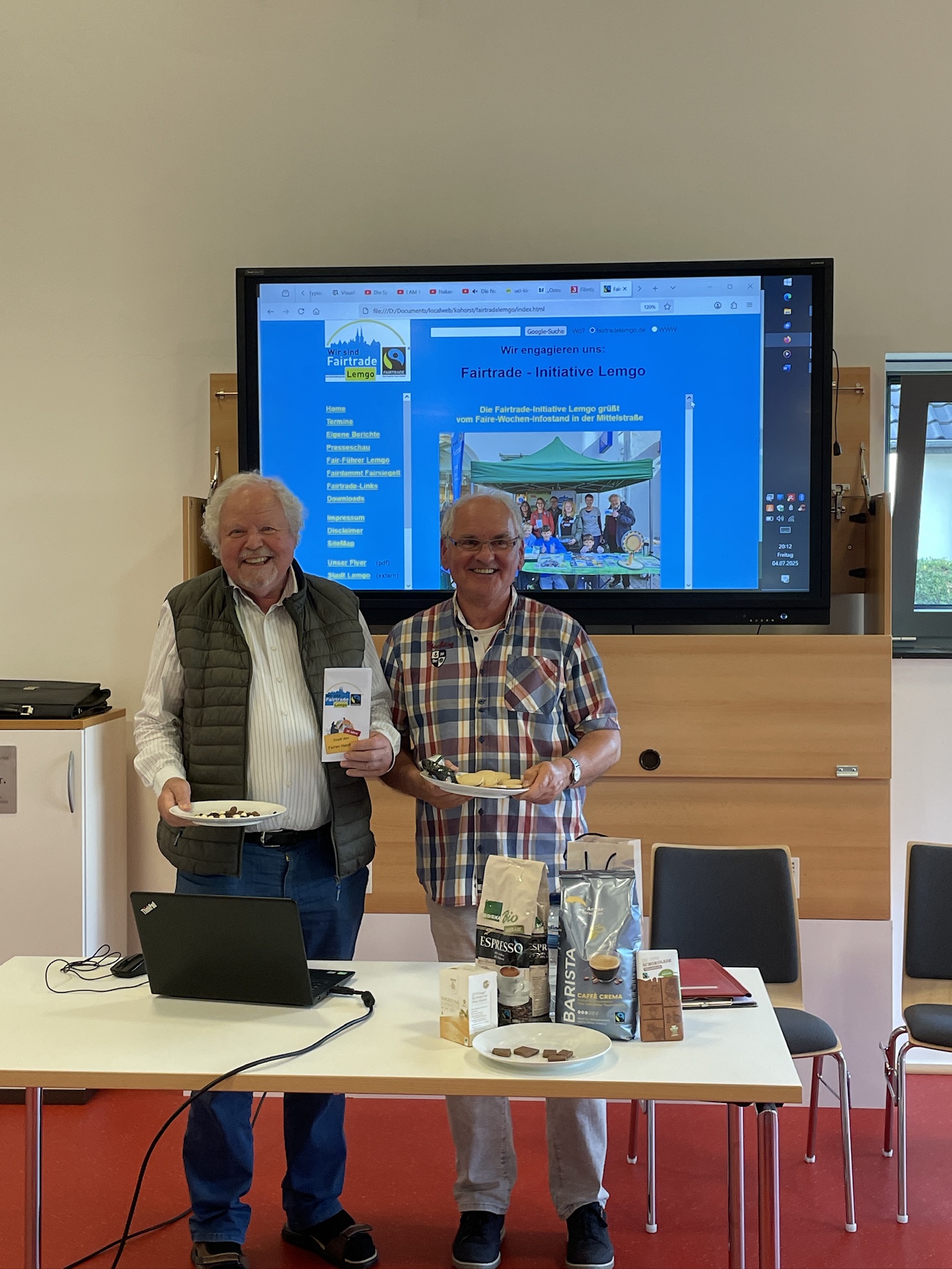 Gute Laune herrschte nicht nur deshalb im Quartierszentrum Lemgo-Süd weil es köstliche Fairtrade-Produkte zum Probieren gab, sondern auch weil Helmut Kohorst es verstand in locker Weise die Besucher in das Thema Fairtrade Lemgo einzustimmen. Seinen Vortrag bereicherte er mehrmals durch kurze Videos, die zeigten wie wichtig die Arbeit von Fairtrade weltweit ist.