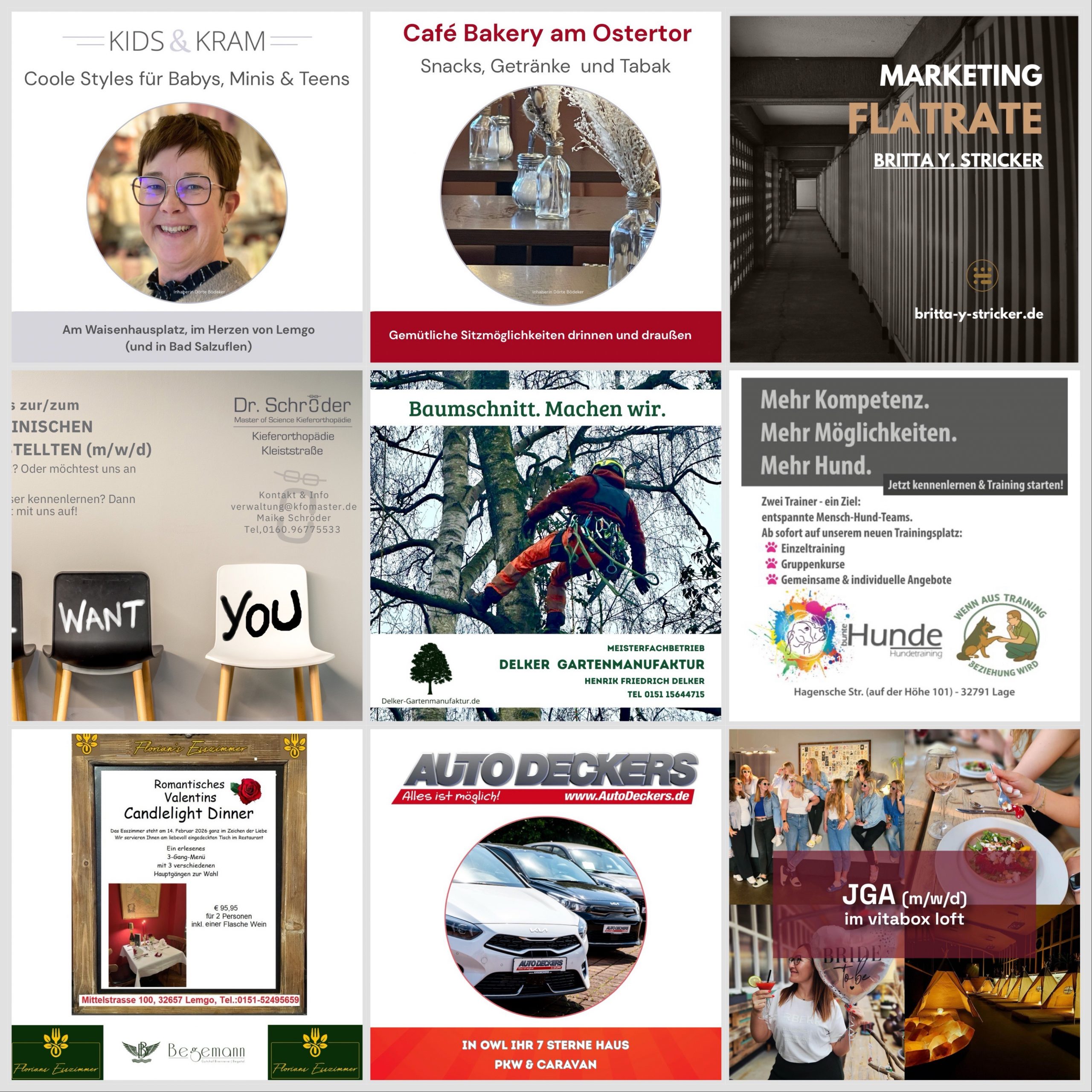 Lemgo lebt von seiner Vielfalt, dem persönlichen Kontakt und der Leidenschaft lokaler Unternehmerinnen und Unternehmer. In unserer aktuellen Werbeaktion im Monat Februar bündeln wir die Kräfte unserer heimischen Wirtschaft und zeigen, wie viel Expertise und Herzblut direkt vor unserer Haustür stecken. Ob exklusive Genussmomente, moderne Mobilität, kreatives Handwerk oder spezialisierte Gesundheits- und Dienstleistungsangebote – unsere Partner stehen für Qualität und Regionalität. Begleiten Sie uns auf einer Entdeckungstour durch Lemgo und unterstützen Sie die Betriebe, die unsere Stadt so besonders machen.