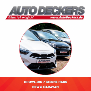 Egal ob auf vier Rädern oder im rollenden Zuhause: Auto Deckers ist ein starker Partner unserer regionalen Werbeaktion. Mit Standorten in Lage und Schlangen steht das Familienunternehmen für erstklassigen Service und eine beeindruckende Auswahl an Fahrzeugen.