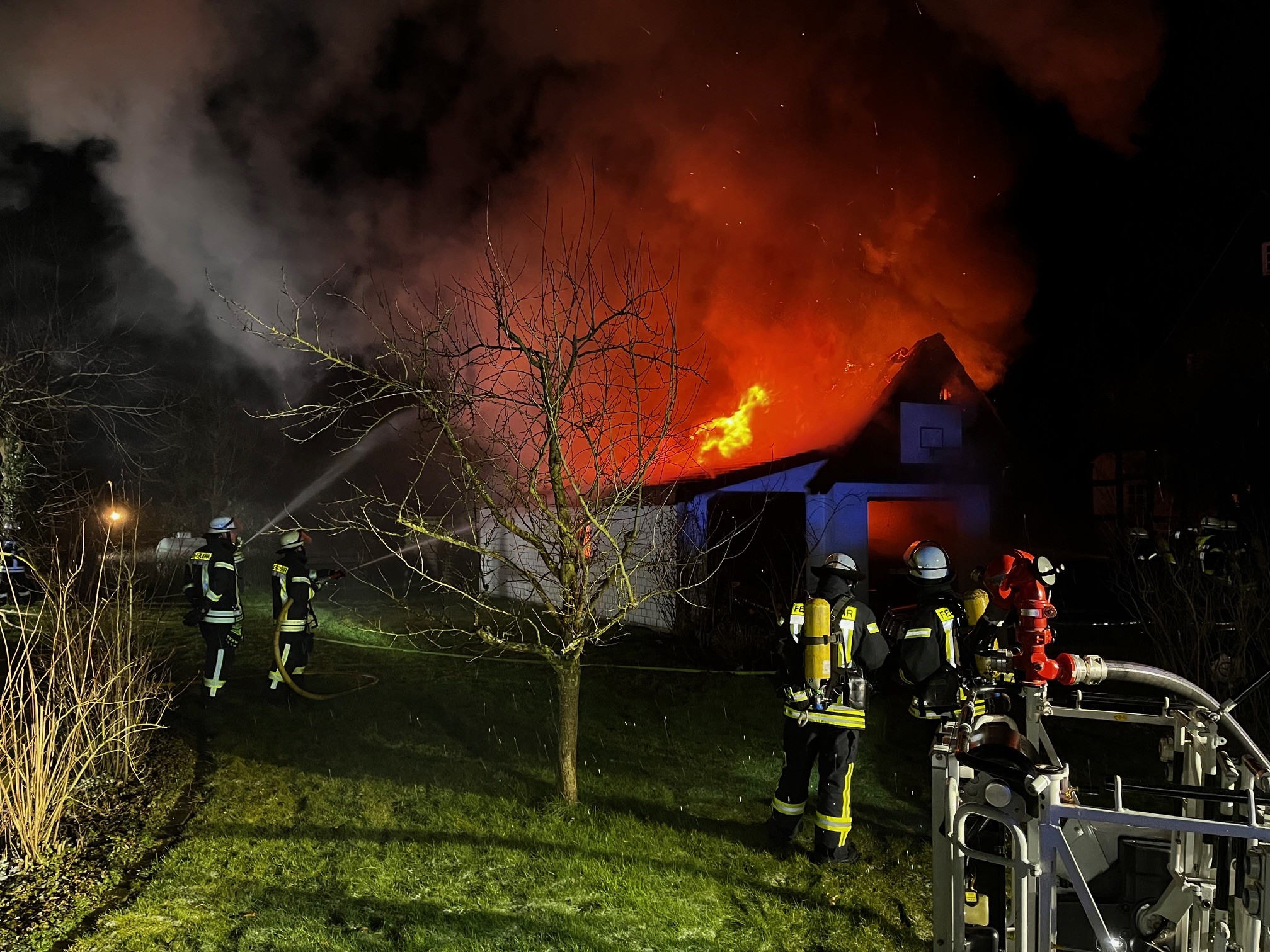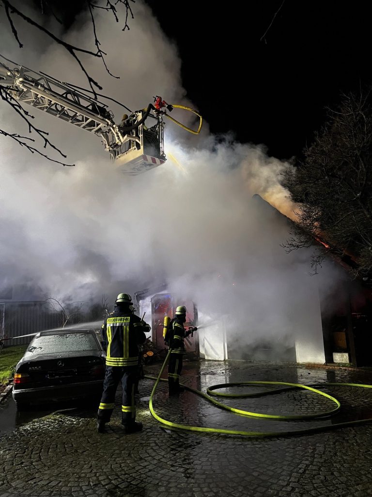 Um kurz vor eins in der Nacht zum Freitag wurde die Feuerwehr Lemgo und Löschgruppe Lieme zu einem Garagenbrand in die Wittighöferheide gerufen.