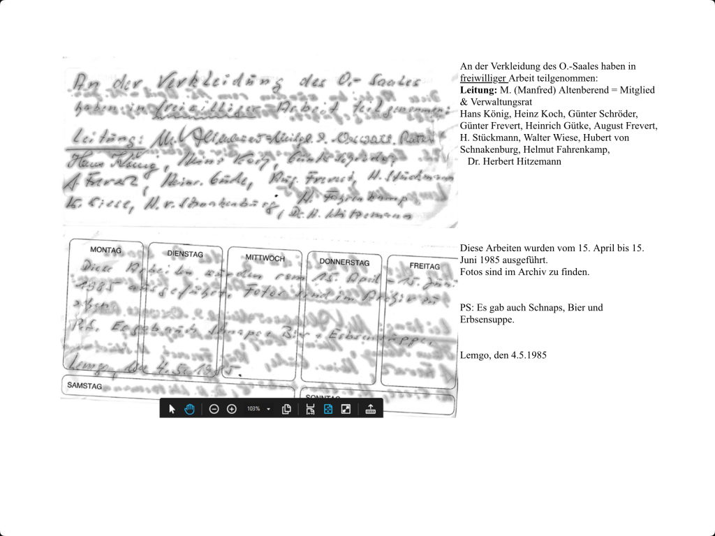 Spekulationen sind erwünscht – das macht den Fund so spannend. Sicher ist bislang nur eines: Das Dach wurde 1985 gedeckt, die Flasche und der darin befindliche Zettel sind also mehrere Jahre alt und stammen aus dieser Zeit.
