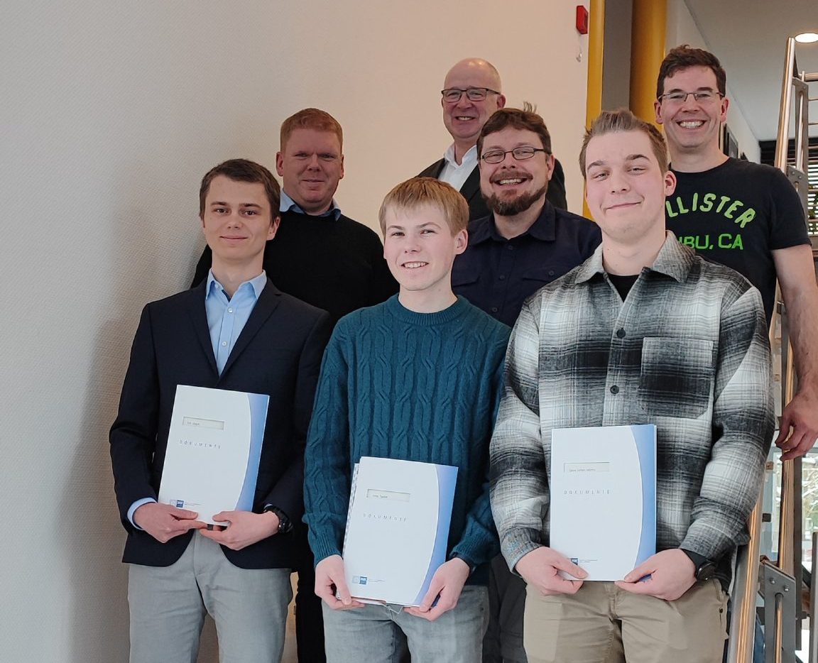 Bild 1(v.l.n.r): Luca Linus Schäfers, Weidmüller Interface GmbH & Co. KG, Ralf Runte, Vorsitzender Werkzeugmechaniker:innen, Martin Raithel, IHK-Abteilungsleiter Aus- und Weiterbildung, Fachkräfte, Michael Senge, Lehrervertreter Werkzeugmechaniker:innen, Matthias Krist, Vorsitzender, Zerspanungsmechaniker:innen, Nikita Krivenko, RATIO-CUT Fertigungstechnik, GmbH, Lorenz Tegenkamp, Lehrervertreter Zerspanungsemechaniker:innen