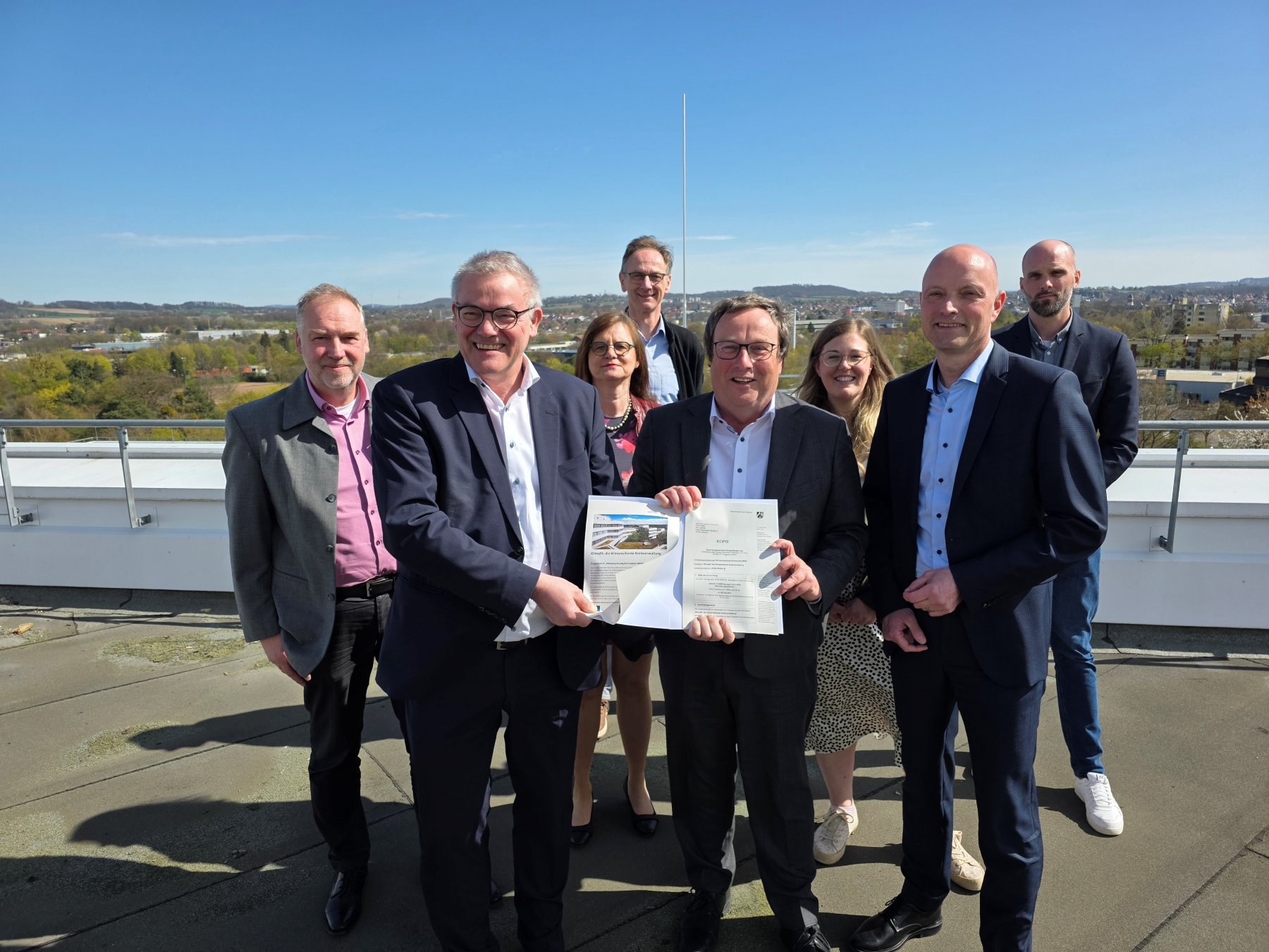 Der Kreis Lippe richtet seine Verwaltung konsequent auf die Herausforderungen des Klimawandels aus. Nachdem er bereits das Kreishaus saniert hat, folgen nun die Außenanlagen. Den Förderbescheid für die Umsetzung der Maßnahmen hat nun Oliver Krischer, Minister für Umwelt, Naturschutz und Verkehr des Landes Nordrhein-Westfalen, während eines Besuchs im Kreishaus übergeben. Das Projekt „Klimafit: Die klimaresiliente Kreisverwaltung“ wird mit über vier Millionen Euro unterstützt und soll 2029 abgeschlossen sein. „Klimaanpassung entscheidet sich nicht auf dem Papier, sondern ganz konkret vor Ort. Der Kreis Lippe zeigt, wie Verwaltungen sich besser auf Hitze, Starkregen und andere Folgen des Klimawandels vorbereiten können. Mit der Förderung unterstützen wir eine Lösung, die Schutz, Aufenthaltsqualität und mehr Grün sinnvoll miteinander verbindet“, betont Oliver Krischer.