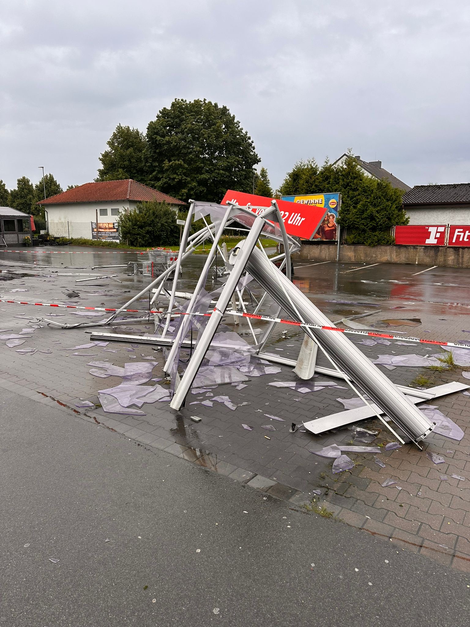(LW) Am frühen Sonntagmorgen gegen 01.50 Uhr erhielt die Polizei Kenntnis über einen Verkehrsunfall auf dem Parkplatz mehrerer Einkaufsmärkte am Steinweg. Vor Ort trafen die Beamten auf einen 18-jährigen Lemgoer und seinen rundum stark beschädigten Mercedes-AMG. Darüber hinaus war ein Unterstand für Einkaufswagen des REWE-Marktes völlig zerstört und ein geparkter Opel Corsa sowie die Sitzbank eines Grillimbisses wiesen Beschädigungen durch umherfliegende Trümmerteile auf. Zum Unfallhergang gab der junge Lemgoer an, dass beim Anfahren mit dem Fahrzeug eine plötzliche Fehlermeldung im Display erschienen sei und der Pkw unkontrollierbar beschleunigt habe. Aufgrund der Spurenlage auf dem Parkplatz ergab sich für die Polizeibeamten schnell ein anderer Verdacht. Die Abriebspuren auf dem Asphalt lassen darauf schließen, dass der Fahrzeugführer auf dem Parkplatz Driftversuche durchgeführt hat, die Kontrolle über seinen mehr als 360 PS starken Wagen verlor und mit großer Wucht gegen den Unterstand für Einkaufswagen prallte. Der Führerschein des 18-jährigen wurde wegen des Verdachts auf Durchführung eines verbotenen Kraftfahrzeugrennens sichergestellt. Sichergestellt wurde ebenfalls der Pkw zur Durchführung einer technischen Untersuchung auf eventuelle Fahrzeugmängel, die nach Angaben des Fahrers zu dem Unfall geführt haben könnten. Der entstandene Schaden beläuft sich nach ersten Schätzungen auf einen niedrigen sechsstelligen Eurobetrag. Nach der Kollision verließen laut Aussage von Zeugen noch vor Eintreffen der Polizei mehrere Personen mit ihren Fahrzeugen zügig den Unfallort. Zeugen, die Angaben zu dem Unfall machen können, oder die vor dem Unfall weitere Fahrzeuge auf dem Parkplatz beobachtet haben, werden gebeten, sich mit dem Verkehrskommissariat der Polizei Detmold unter der Telefonnummer 05231-6090 in Verbindung zu setzen.