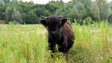 Zwei Ochsen, sechs junge Kühe und drei Wasserbüffel leben seit kurzem rund um die Baggerseen auf dem ehemaligen Betriebsgelände der…