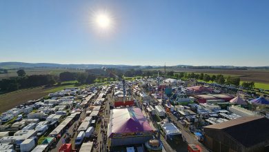 Die großen Eingangstore stehen bereits, die ersten Schausteller sind ebenfalls schon angereist und werden das weitläufige Festgelände an der B1…