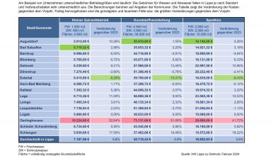 Die Gebühren für Wasser- und Abwasser fallen in diesem Jahr in den lippischen Kommunen besonders unterschiedlich aus. Das ist das…
