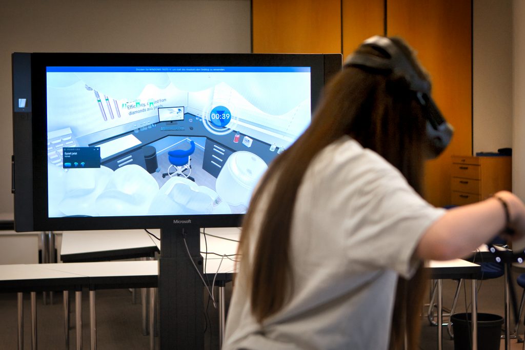An der Station „Virtual Reality“ konnten die Jugendlichen bei einem VR-Spiel die Rolle eines Zahnarztes einnehmen und im virtuellen Raum eine Patientenbehandlung mit Dentalinstrumenten der Brasseler Marke Komet simulieren.