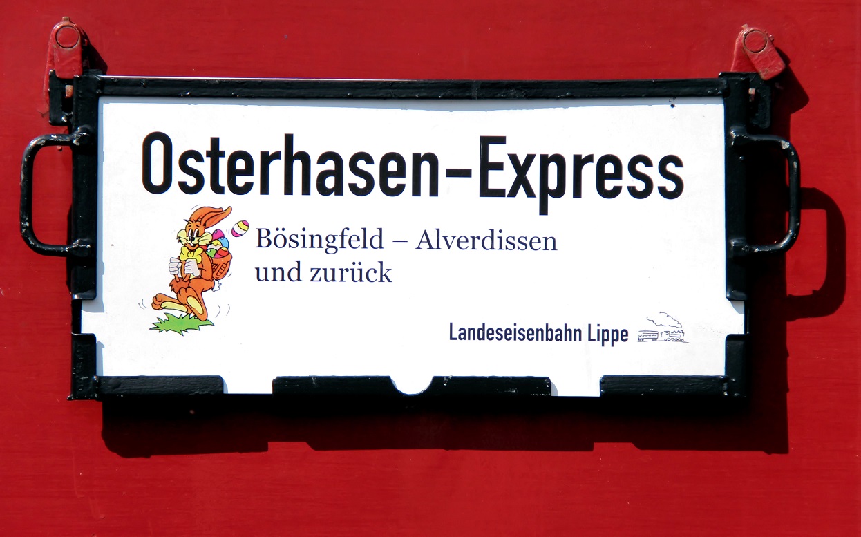 Nordlippe. Am Ostersonntag (05.04.2026) und Ostermontag (06.04.2026) ist es wieder soweit und der Osterhasen-Express der Landeseisenbahn Lippe pendelt zwischen Bösingfeld und Alverdissen. Zu Ostern verreisen und doch in der Heimat bleiben, oder statt dem traditionellen Osterspaziergang eine Osterfahrt mit einer historischen Museumseisenbahn unternehmen – der Osterhasen-Express macht es möglich und ist ein Erlebnis für die ganze Familie.