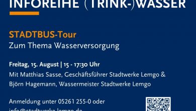 Lemgo – Woher kommt eigentlich das Lemgoer Trinkwasser – und wie bleibt es so zuverlässig sauber und frisch? Am Freitag, 15.…