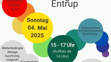 Kinderkleidung, Spielzeug, Babysachen und mehr Am Sonntag, 4. Mai 2025, gibt es in Entrup einen Flohmarkt rund um alles für Babys und…