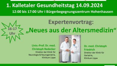 Am 14. September 2024 findet von 12:00 bis 17:00 Uhr der 1. Kalletaler Gesundheitstag im Bürgerbegegnungszentrum in Hohenhausen/Kalletal statt. Diese…