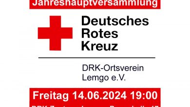 Der Vorstand des DRK-Ortsvereins Lemgo e.V. lädt seine Mitglieder zur regulären Jahreshauptversammlung am Freitag, 14.06.2024 in das DRK-Zentrum Lemgo, Pagenhelle…