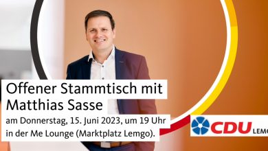 Michael Pitt9. Juni 2023Matthias Sasse zu Gast beim offenen politischen Stammtisch der CDU Lemgo am 15. Juni 2023 ab 19:00 Uhr