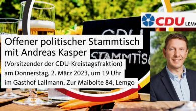 Der CDU-Stadtverband Lemgo lädt wieder zum offenen politischen Stammtisch ein. Jeder ist dazu herzlich willkommen! Kommen Sie gerne mit uns…