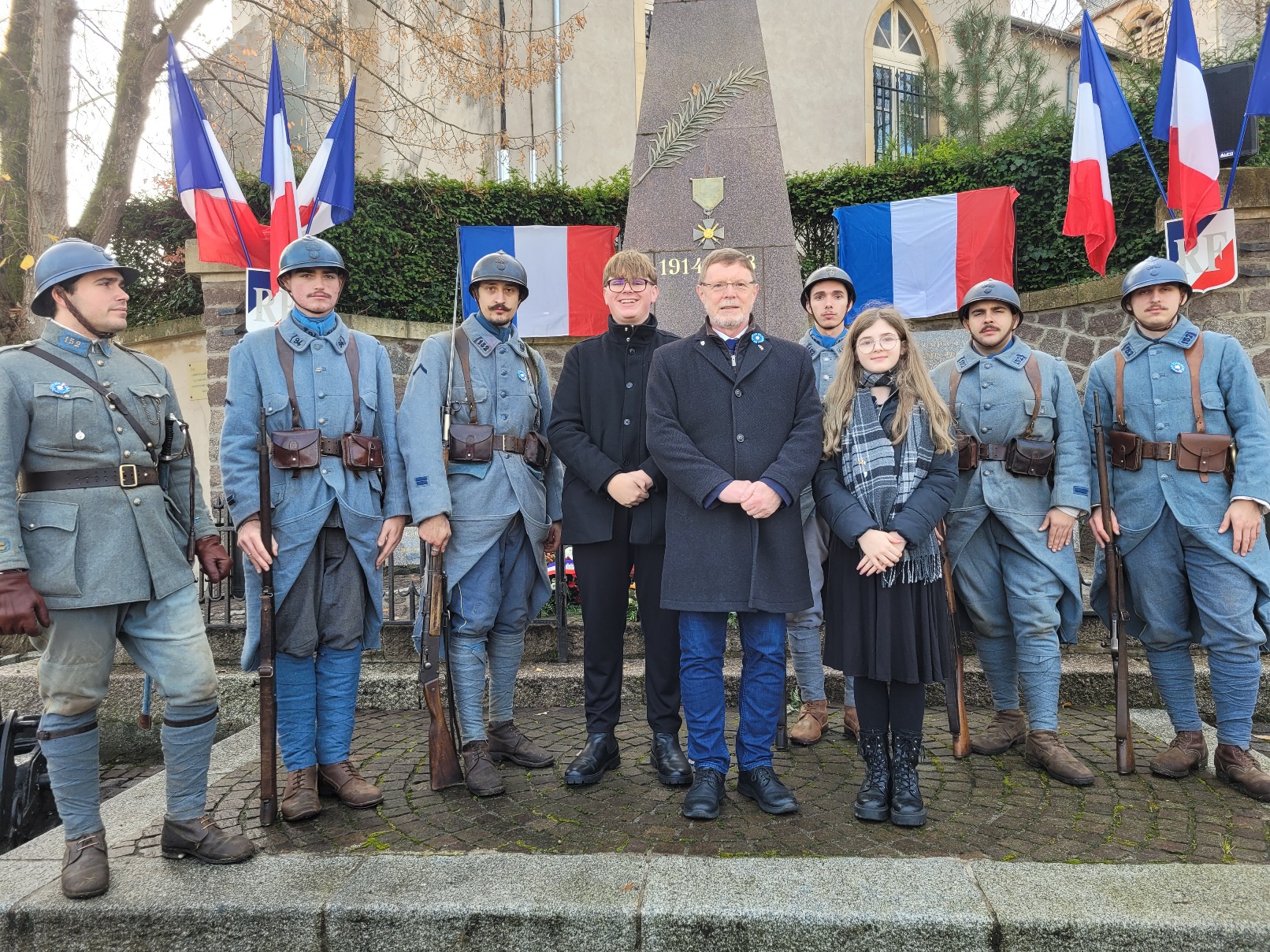 Der 1. Weltkrieg endete vor 107 Jahren mit der Unterzeichnung des Waffenstillstandes in einem Eisenbahnwaggon in Compiègne. Dieser Tag wird seitdem in Frankreich als Feiertag begangen. Es ist eine gute Tradition, dass eine Delegation aus Lemgo an der Veranstaltung in der Partnerstadt Vandoeuvre teilnimmt und einen Kranz für die Verstorbenen, Verwundeten, Witwen und Waisen dieses Krieges und aller Kriege niederlegt. Ein Blick in die Zeitungen der Region zeigt, dass die von uns seit 1978/79 gelebte Partnerschaft auch in diesem schwierigen Bereich eine Ausnahme darstellt. Torsten Buncher, langjähriger Vorsitzender der Partnerschaftsgesellschaft erinnerte in diesem Jahr in seiner auf Französisch gehaltenen Rede an die politischen Entwicklungen vor dem Kriegsbeginn und an die Leiden der Zivilbevölkerung. Die damalige Reichsgrenze war nur gut 20 Kilometer entfernt. Der Krieg fand also vom ersten Tag an direkt vor der Haustür unserer französischen Freunde statt.