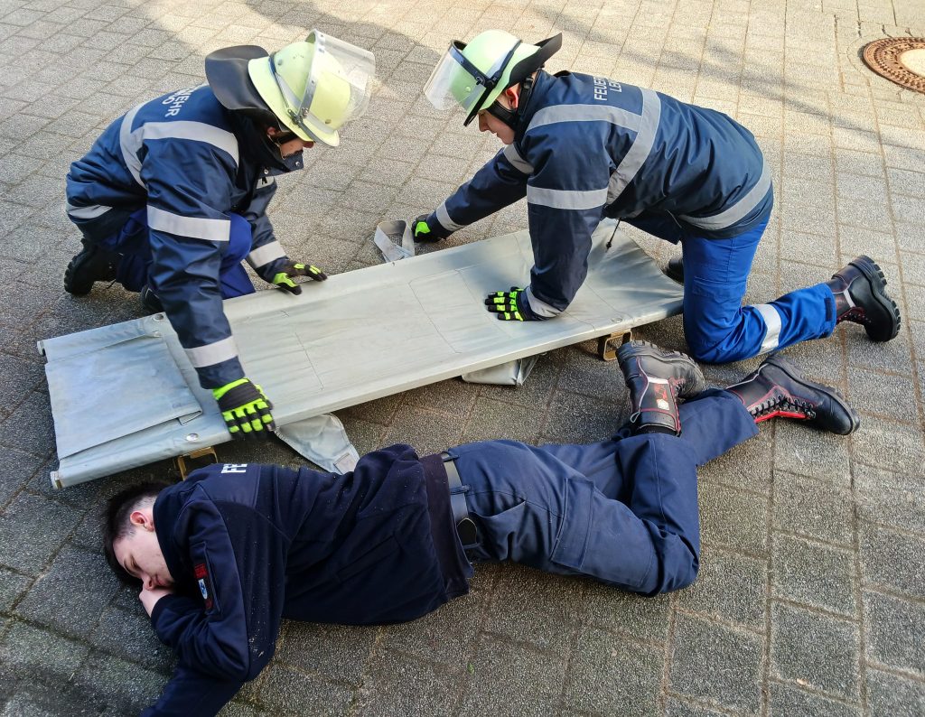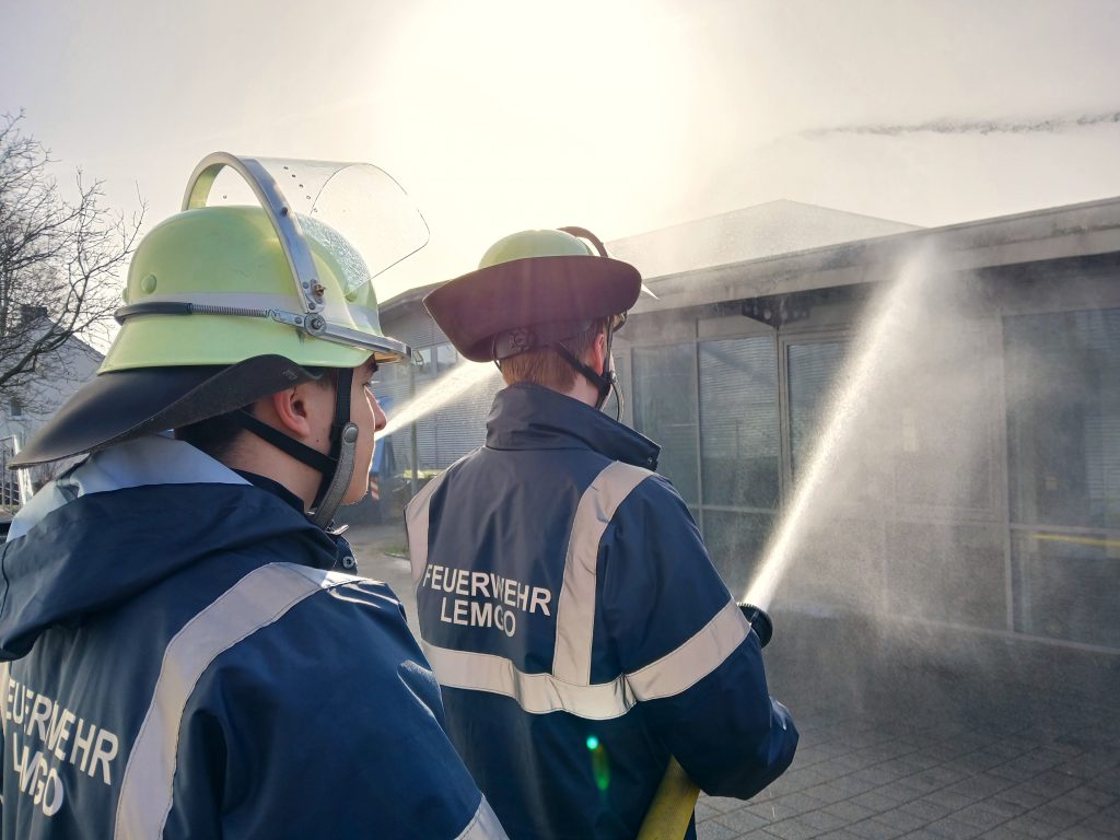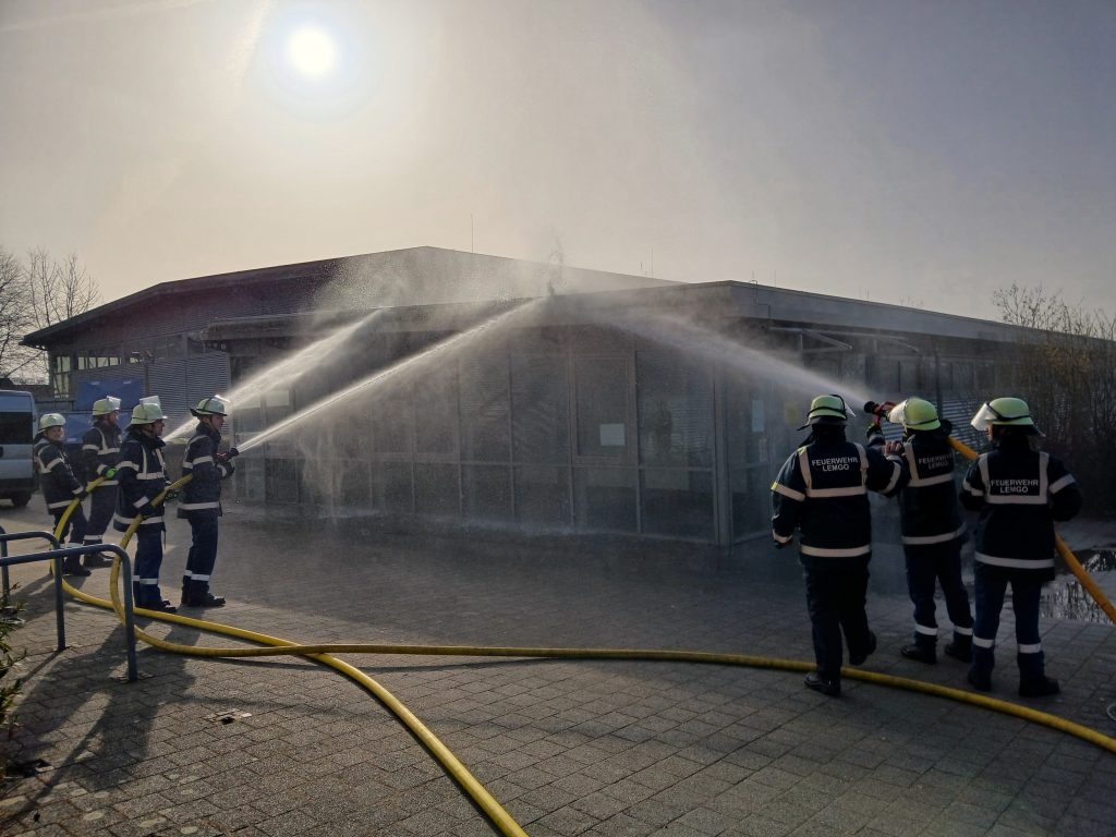 Bei bestem Frühlingswetter fand am ersten Samstag im März eine praxisorientierte Übung der Feuerwehr-Schul-AG, bestehend aus Schülerinnen und Schülern der Haupt-, Real- und Gesamtschule in Lemgo, statt. Nach mehreren eher theoretischen Unterrichtseinheiten in den letzten Wochen stand diesmal „Praxis pur“ auf dem Programm: Erste Hilfe, Fahrzeugkunde und Löschangriffe wurden in zwei realitätsnahen Szenarien miteinander kombiniert.