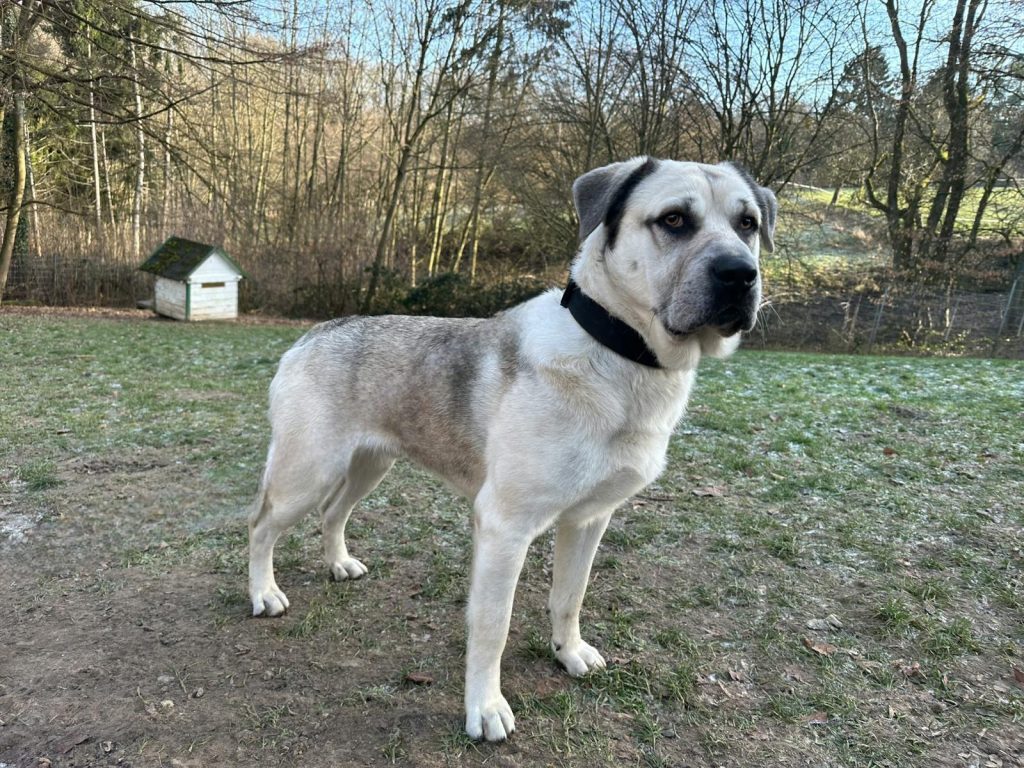 Der stattliche Mischling Ragnar, der vermutlich Herdenschutzhund-Gene in sich trägt, lief am Nikolaustag 2025 am Hangar in Detmold herum. Er konnte durch das Team vom Tierheim Detmold gesichert und in Obhut genommen werden. Weil niemand den hübschen, aber sehr kräftigen Rüden vermisste, ist leider davon auszugehen, dass er bewusst ausgesetzt und im Stich gelassen wurde. Ragnar ist etwa zwei Jahre alt, zeigt sich als guter Wachhund, ist aber (noch) recht unsicher gegenüber Umweltreizen. Er braucht deshalb stabile und selbstbewusste Menschen, die ihm Sicherheit geben, aber auch an seiner weiteren Erziehung arbeiten. Vielleicht könnte eine souveräne Hündin im neuen Zuhause dabei unterstützen. Für eine Familie mit Kindern ist Ragnar nicht geeignet. Nach telefonischer Terminabsprache kann Ragnar gern im Tierheim Detmold besucht und kennengelernt werden (05231/24468).
