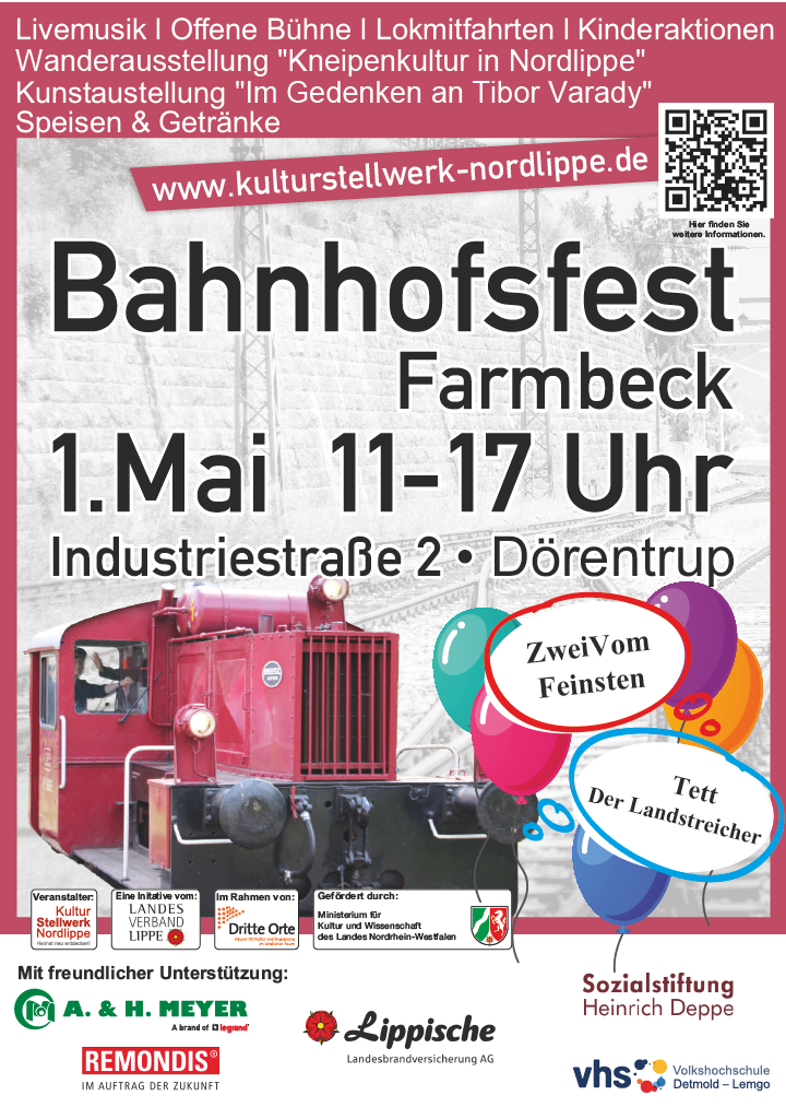 Dörentrup, 17.04.2026. Am Freitag, den 1. Mai 2026 verwandelt sich der Bahnhof Farmbeck erneut in eine lebendige Bühne für Musik, Kunst und Technik. Bereits zum fünften Mal lädt das Kulturstellwerk Nordlippe, eine Initiative des Landesverbandes Lippe, dazu ein, die besondere Atmosphäre des historischen Bahnhofsgeländes zu erleben.