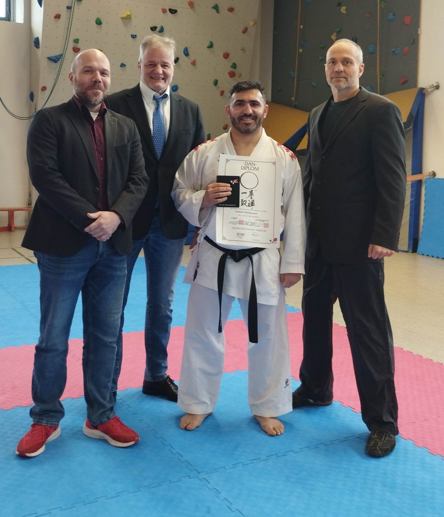 Vor der Prüfungskommission des Deutschen Karate Verbandes, besetzt mit Dennis Dreimann (5.Dan), Wolfgang Henkel und Stefan Krause (beide 7.Dan), zeigte Maksim eine überzeugende Leistung in allen Prüfungsbereichen.