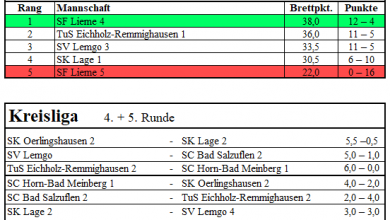 Die Schachfreunde der 4ten Mannschaft aus Lieme steigt von der Bezirksliga in die Verbandsklasse OWL auf, während die 5 Mannschaft…