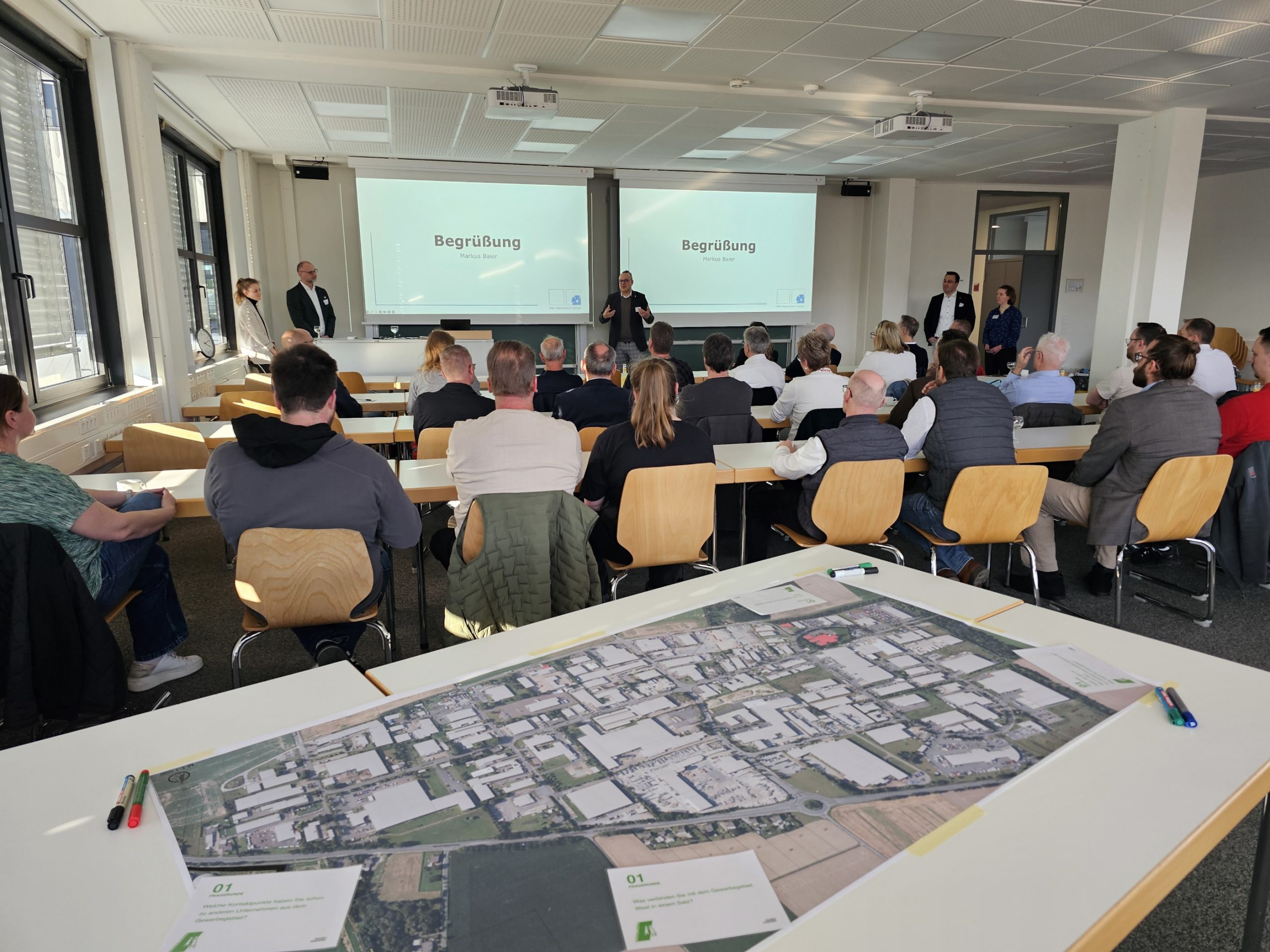 Rund 30 Unternehmerinnen und Unternehmer aus dem Gewerbegebiet West der Alten Hansestadt Lemgo waren Teil des Auftaktworkshops des Projekts „Nachhaltig attraktive Gewerbegebiete“. Im Fokus des ersten Treffens in den Räumen der Technischen Hochschule Ostwestfalen-Lippe standen das persönliche Kennenlernen, der Aufbau eines Netzwerks vor Ort sowie das Sammeln erster Impulse für ein gemeinsames Zielbild 2035 des Gewerbegebiets. Das Projekt der Stadtverwaltung ist jederzeit offen für weitere Unternehmen aus dem Gebiet.