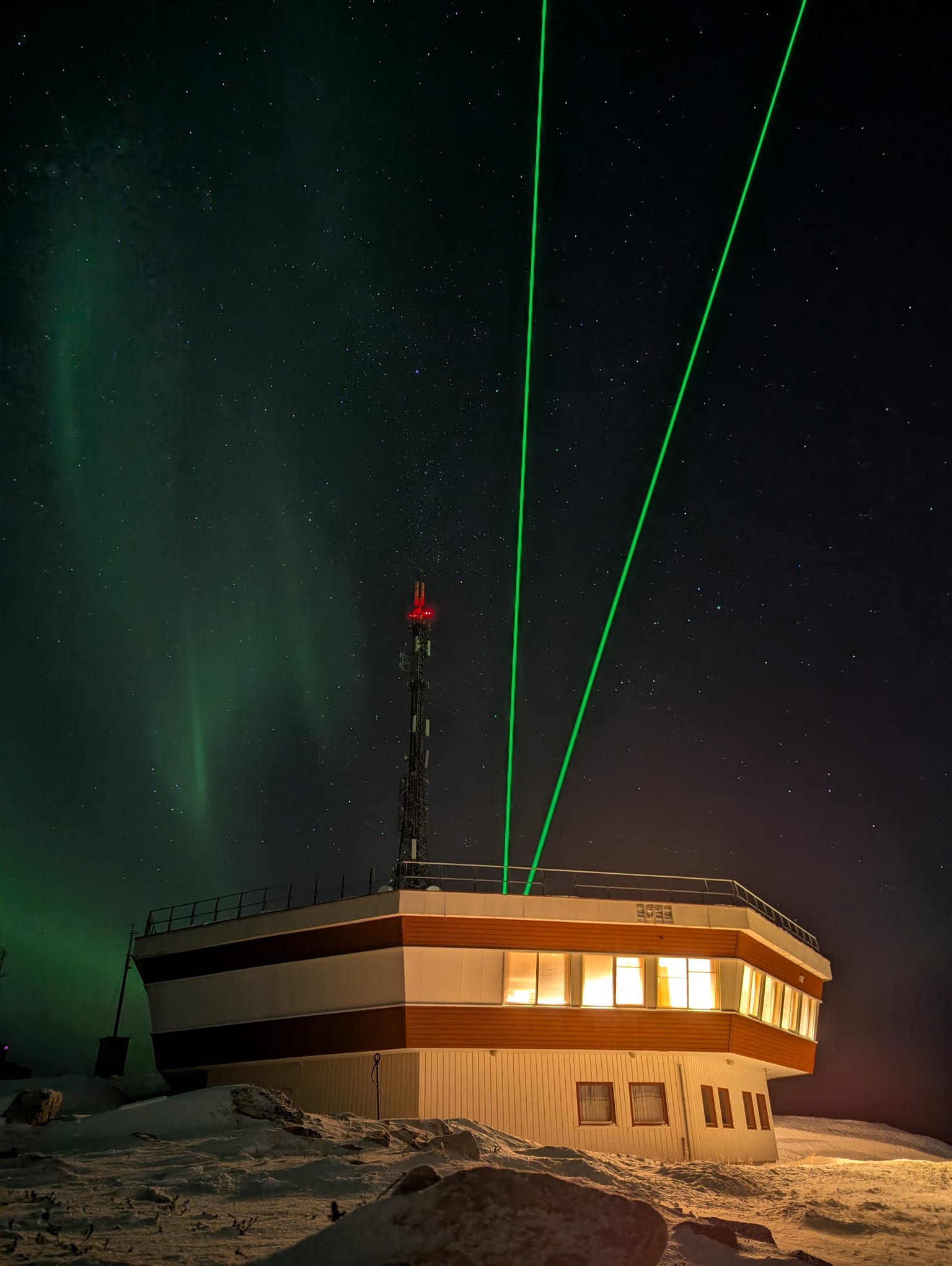 Forschung steht und fällt hier mit dem Wetter: Nur bei Wolkenlücken kann gemessen werden, dann aber rund um die Uhr. Lüke-Mense berichtete von seinem „Wetterglück“ beim jüngsten Aufenthalt im November. Dies ermöglichte nicht nur viele Messdaten, sondern auch spektakuläre Fotos von Polarlichtern, die er dem Publikum präsentierte. Ein Highlight war zudem der Start einer Forschungsrakete vom benachbarten „Andøya Space“ Raketenstartplatz, dessen Auswirkungen auf die Atmosphäre direkt gemessen werden konnten. In diesem Kontext ging er auch auf die rasant steigende Zahl kommerzieller Raketenstarts und deren Umweltfolgen ein.