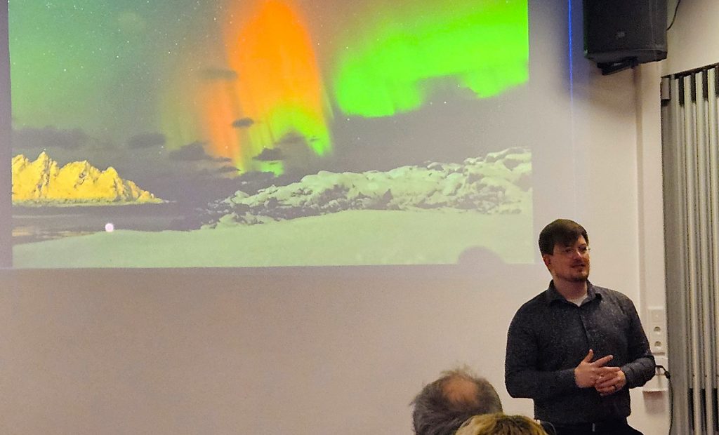 Lemgo. Einen derart vollen Saal erlebt man im Januar selten: Bis auf den letzten Platz war das Quartierszentrum gefüllt, als Dr. Thorben Hendrik Lüke-Mense vom Leibniz-Institut für Atmosphärenphysik (IAP) am 2. Januar 2026 zu Gast bei der Nachbarschaft Lemgo Süd war. Sicherlich lockten die angekündigten Polarlicht-Aufnahmen viele Gäste an, doch bemerkenswert war das große Interesse an Physik, Klimaforschung und der norwegischen Winterlandschaft.